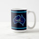 Ein Hund schlug mit einer aquamarinen Schlittentasche und das Südkreuz überlagerte sich auf einer blauen Karte Australiens. Alles auf einem sternigen Hintergrund. Wer hätte es denn gehabt? In Oz auf den Kopf drängen; manchmal sogar auf Schnee. Hundeschlitten ist in Australien sehr beliebt. Auf dem Hotham in Victoria gibt es jedes Jahr ein großes Rennen.