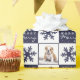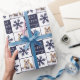 Hund Welpe Foto Schneeflocke Weihnachtswrapping Papier. Dunkelblau-weißer Hintergrund mit schönen Schneeflocken. Weiß, froh, Jolly Typografie. Das Design hat ein individuelles Foto eines Hundewelpen - Legen Sie Ihren Lieblingshund oder jedes andere Haustier-Foto in die Vorlage und machen Sie Ihr personalisiertes einzigartiges Weihnachtspapier.