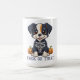 Dies ist eine niedliche Halloween-Tasse, die einen niedlichen Hund in skelettähnlichen Halloween-Kostümen zeigt. Sie können den Standardtext "TRICK OR TREAT" anpassen.