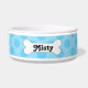 Verderben Sie Ihren Hund mit dieser personalisierten Hundeschüssel. Sie hat einen hellblauen Polkapunkt, den gemusterter Hintergrund dort ein großer weißer Hundeknochen in der Mitte ist, in der Sie mit dem Namen Ihr Hundes personifizieren. Verwöhnen Sie Ihr Hündchen mit den vielen Einzelteilen, die wir in unserem Speicher haben.