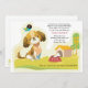 Diese niedliche Einladung ist für Geburtstagsfeier eines Kindes perfekt. Sie kennzeichnet einen Welpen, seinen Doghouse, einen Knochen in einem Teller und einen zwitschernden Vogel, der auf dem Kopf des Welpen gehockt wird. Die Karte ist einfach, mit Ihrer Benennung, Schriftart, Schriftartfarbe und Wahl von sechs Papiersorten besonders anzufertigen.