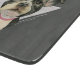 Aquarellmalerei eines amerikanischen Pitbullterrierschwarzweiss-welpen. Er ist oben des Hundes mit großen hoffnungsvollen schauenden Augen ein nahes. Geometrischer geformter Rahmen mit Marmormuster um den Hund. Niedlicher Entwurf für Hundeliebhaber.