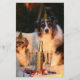 Das Design zeigt ein humorvolles Foto von Hunden, die zum Silvesterfeiern gekleidet sind. Sie sitzen auf einer Furry-Decke und tragen Party-Hüte. Vor ihnen ist eine Flasche Champagner geöffnet.