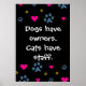 Humorvolles Geschenk für Hunde und Katzen Liebhaber Dieses lustige Design mit dem Zitat "Hunde haben Besitzer, Katzen haben Mitarbeiter" beinhaltet ein Muster von farbigen Herzen und Pfotendrucken und macht ein einzigartiges Geschenk für Hunde- und Katzenbesitzer, Haustierbesitzer und Tierliebhaber. Anpassen oder Anpassen des Designs Kaufen Sie dieses Element, oder passen Sie den Text mit einem anderen Schriftart, einer anderen Farbe oder einer anderen Größe an, oder fügen Sie ein Bild hinzu.
