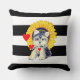 Niedlicher Yorkshire Welpenhund mit Herz und Sonnenblumen auf schwarz-weiß gestreiftem Throw Kissen. Welpe Hund nur auf der Vorderseite. Elegante Schwarz-Weiß-Zuhause Dekorative Kissen.