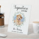 Signature Drinks von deinen Haustieren! Bringen Sie Ihren besten Hund, die beste Katze und jedes Haustier in Ihre Hochzeit mit einem eigenen Bar für Ihre Gäste. Ideal für Hundeliebhaber, und ein spezielles Hundeschlitten Bar wird bei Ihrer Hochzeit ein Hit sein. Einfach modernes Weiß mit Eukalyptus-Blätter. Passen Sie dieses Lieblingshilfeschild mit Ihrem Hund, Katze, Welpe oder Kitten Lieblingsgetränk, Name und Signatur an! COPYRIGHT © 2020 Judy Burrows, Black Dog Art - Alle Rechte vorbehalten. Hunde Hochzeit Bar Haustier Signatur Getränke Custom Foto Pedestal Schild