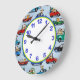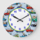 Eine herrliche Uhr für einen kleinen Jungen! Hunde sind der gekennzeichnete Fahrer in thi Szene, betreiben die Autos und heraus hängen in der Art! Mit einem hellblauen Hintergrund und bunten Autos sind die Vollenden-Touchs in koordinierenfarben - die Ringgrenzen, die winzigen Markierungen und die Zahlen erfolgt.