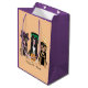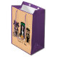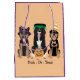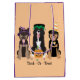 Hunde in Halloween-Kostümen probieren oder behande Mittlere Geschenktüte