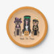 Hunde in Halloween-Kostümen probieren oder behande Pappteller