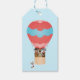 Niedliche Darstellung verschiedener Hunderassen in einem Heißluftballon.