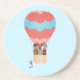 Niedliche Darstellung verschiedener Hunderassen in einem Heißluftballon.