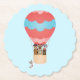 Niedliche Darstellung verschiedener Hunderassen in einem Heißluftballon.
