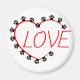 Zeichnungen von Hundepfoten, ein rotes Herz und das Wort "Liebe". Originelles Design.