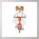 Dieser niedliche Hund ist auf einem Push-Bike und er fährt Fahrrad. Das Fahrrad ist rot. Dieses gedruckte Bild war ursprünglich eine handgezeichnete und gemalte Illustration.