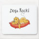 Ein niedlicher brauner Hund entspannt sich glücklich auf ihrem Welpenbett und schwarzer Text liest "Hogs Rock!" auf unseren Hunden Rock T - Shirt, Tasse, Mousepads, Knöpfen, Karten und vieles mehr!