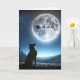 Ein deutscher Schäferhund schaut auf einen Vollmond, wo der Schlitten und die Rentiere des Weihnachtsmanns gegen einen hellen Vollmond schweift