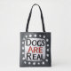 "Hunde sind echt" ist ein niedliches Textdesign in Grau mit schwarzem und rotem Text, mit weißer Akzent-Form und weißen texturierten weißen, weißlichen, weißlichen Punkten, die ihn umgeben.