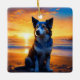 Hunde sitzen am Ocean Beach bei Sunset Keramikornament