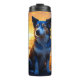 Ein Hund sitzt am Strand bei Sonnenuntergang ai art. Hunde thematisiert Thermaltumbler.