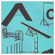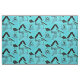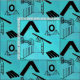 Die Silhouetten der Hunde-Agility-Geräte zeigen vor einem blauen, grünen Hintergrund und machen ein farbenfroh Muster, um sich an einen Ihrer Lieblingssportarten zu erinnern. Die Hintergrundfarbe ist nicht solide. Es hat absichtliche Variationen, um ein leicht gebrochenes Muster zu erzeugen.
