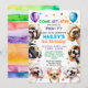 Hunde Einladung Geburtstagsparty lädt ein. 2 Jahre alt (Sie können das Alter ändern). Für Junge oder Mädchen. Niedliche glückliche, lächelnde Welpe Illustration mit Konfetti und Ballons umgeben von beliebten kleinen Hunderassen wie, shih tzu, Mops, Malese, chihuahua, Poodle, Beagle. Alle bearbeitbaren Texte mit Name, Alter, Uhrzeit des Party, Adresse und UAWG.