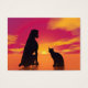 Schwarze Silhouette einer Katze neben dem Hund sitzend und Blick auf den schönen roten Sonnenuntergang