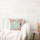 Ein niedliches, farbenfrohes, lustiges, skurriles Design, das Hundefreunde jeden Alters sicher lieben werden, ob sie Kinder oder Erwachsene sind, mit hellblauen Hunden, Hundeknochen aus Ton und Aqua, und Text, der Woof auf Korallenhintergrund liest.