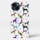 Abstraktes Muster mit bunten Hunden und Pfoten, perfekt für Kinder und Hunde
