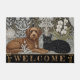 Willkommen Doormat mit braunem Hund & Black Cat Vintage Kunstwerke umgeben von einem schönen Dickstein, weißen Orchideen, Pampas Gras und exotischen Winterweiden geschnitzt in Gold der Art Nuovo im Stil von William Morris. Herrliches Geschenk für Hund- und Katzenbesitzer. Passen Sie den Begrüßungstext einfach an. Für kleinere (Größer-)Versionsanpassungen, bitte in meinem Shop nachsehen.