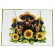 Niedliche Darstellung von Hunden umgeben von Sonnenblumen. Ideal für Hundeeltern oder Liebhaber von Haustieren im Sommer!