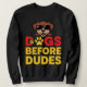Kühn und humorvoll ist das Hunde-vor-Typen-Design perfekt für Hundeliebhaber, die wissen, wo ihre Loyalität liegt. Mit einem coolen Cartoon-Hund mit Sonnenbrille und Pfotenabdrücken ist dieses Design spielerisch und auffallend.
