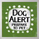 Ein unumkehrbares und niedliches typografisches Tierdesign, das "Hundealarm, Vorbereiten für Haustiere" sagt. Es ist mit schwarzem und rotem Text auf einem weißen Rechteck mit funky, spielerisch weißen Punkten umgeben, die alle auf einem grauen Hintergrund liegen.