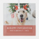 Modernes, individuelles Foto Happy Pawlidays Urlaubsornament mit modernen Serifenschriften mit kleinen Pfotendrucken, die im festlichen roten Block unten überlagern. Foto und Text Ihres Begleiters können leicht für ein so einzigartiges Design wie Ihr spezielles Pelzbaby personalisiert werden! Das abgebildete Bild dient nur zur Veranschaulichung, um durch Ihr eigenes Foto ersetzt zu werden. Das Bild der Platzhalter ist von einem bezaubernden Welpen, der eine Rentierzange trägt.