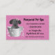 Niedliche Visitenkarten für Hundegroßhändler. Lassen Sie sich von diesem Welpe in einer Badewanne mit Blasen merken. Rosa Glitzer Hintergrund ist sicher, um Ihr Geschäft bemerkt zu bekommen.
