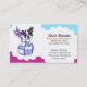 Original Boston Terrier zeichn und Haustier Visitenkartendesign von Andie of Off-Leash Art: Großartige Anordnung in cooler Blues und warmen Pflaumen für Hundezüchter, Haustierpfleger, Welpenläden und Zwinger. Personalisierbar.