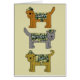 Drei verschiedene farbige Cartoon-Hunde mit Tarnkappenhüten und gemusterten Mänteln. Auf den Mänteln steht "Happy Mother's Day".