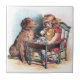 Ein kleines Mädchen, das einen Schellfisch trägt, setzt an einem Kind-groß, antiken, hölzernen Tisch mit angehobenen ausgebogten Seiten. Sie hat eine Keramikschale und Saucer mit einem Löffel in ihm und in ihr isst einen Keks. Ein Hund ist wartete, um alles aufzuräumen, das in diese viktorianische Illustration ab 1887 fällt.