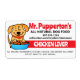 Niedlicher, glücklicher Hund oder Welpe mit einer Schüssel Futter auf diesem Produktetikett für einen Heimtierfutter-Koch, hausgemachte Hunde-Leckereien oder gesundes Hundefutter, personalisiert mit Ihrer Wahl von Schriftart und Farben überall.