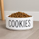 Diese minimalistische Hundeschüssel enthält das Wort "Cookies" in fett schwarzem Text auf einer weißen Keramik. Es ist für Hundeliebhaber konzipiert und verbindet Stil und Spaß in einem eleganten, funktionalen Teil. Ideal für Hunde mit Feinschmecker und Haustiereltern, die trendige, schlichte Accessoires Liebe geben. Eine passende Wasserschüssel mit "Milch" Text steht separat zur Verfügung, um das Aussehen zu vervollständigen.