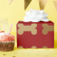 Niedliches Weihnachtsgeschenkpapier für Hunde oder Menschen mit Leckereien von Hunden über festlich rotem Hintergrund.