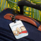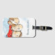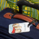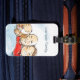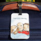 Dieses Gepäckanhänger-Design zeigt eine niedliche Welpe und ihre Eltern, einen kahlen Mann und eine brünette Frau. Sie können den Text anpassen.