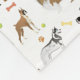 Ein buntes, optimistisches Hundemuster. Der Platz zwischen den Hunden ist voll von bunten Knochen und Pfoten.