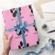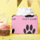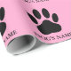 Der Hund hat Pfosten. Maßgeschneidertes Packpapier für Hundegeschenke. Schwarze Farbe auf einem rosa Hintergrund. Bearbeiten Sie den Namen des Hundes, um dieses Verpackungspapier personalisiert zu machen.