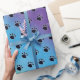 Schwarze Hundepads drucken auf Regenbogenuntergrund.