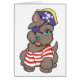Ein niedlicher chubby Piratenwelpe, der ein rotes und weißes Streifen-Shirt, den Hut des Piraten und Augenflecken, einen einzigartigen Piratenentwurf perfekt für Hundeliebhaber trägt, die auch Liebe kapert!