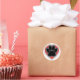 Ein Cartoon-Hundekuchen in einem roten Herz mit schwarzen Konturen. Originelles Design für Menschen, die Liebe Hunde.