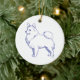Klassisches Design in Blau-Weiß. Blaue Linienzeichnung der Hunderasse Spitz auf weißem Untergrund.