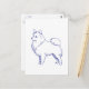 Klassisches Design in Blau-Weiß. Blaue Linienzeichnung der Hunderasse Spitz auf weißem Untergrund.