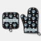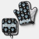 Hundeschlitten, blaue Pfauen, weiße Herzen, Ihr Na Ofenhandschuh & Topflappen-Set