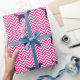 HundeSilhouette im Blau auf rosa Zickzack Muster Geschenkpapier
